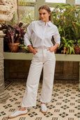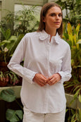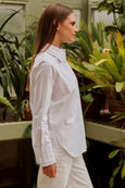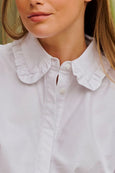 Babette and femine and pretty as she sounds. 100% cotton oxford, gorgeous peter pan collar with ellegant frill detailing on collar & cuff. Classic tailored fit.